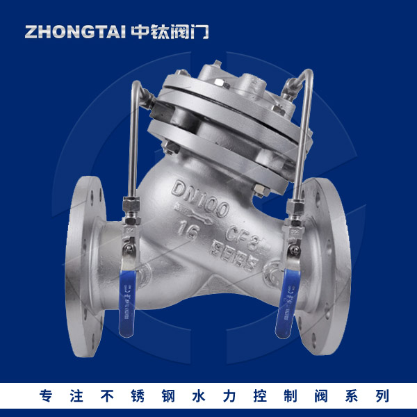 浙江中鈦閥門有限公司位于享有“中國泵閥之鄉”美譽的浙江溫州--永嘉甌北五星工業區。 中鈦閥門集設計開發、生產銷售、安裝服務為一體的中型給排水閥門專業制造企業。主要產品有不銹鋼水力控制閥、管力閥、100X型浮球球閥、200X減壓閥、300X型緩閉止回閥、400X流量控制閥、500X型泄壓閥持壓閥、600X水力電動控制閥、700X水泵控制閥、800X型壓差旁通控制閥……